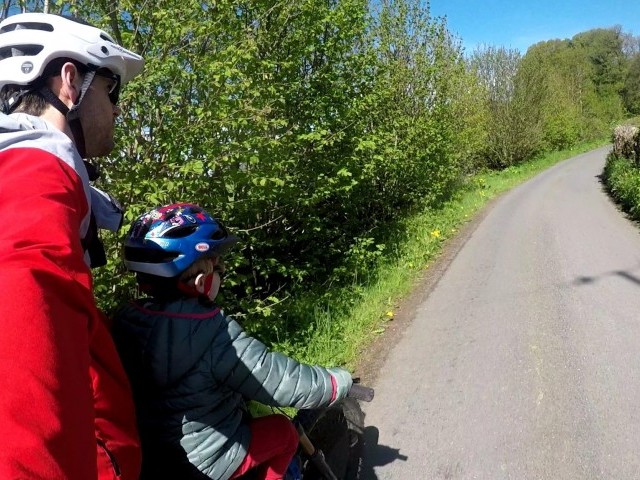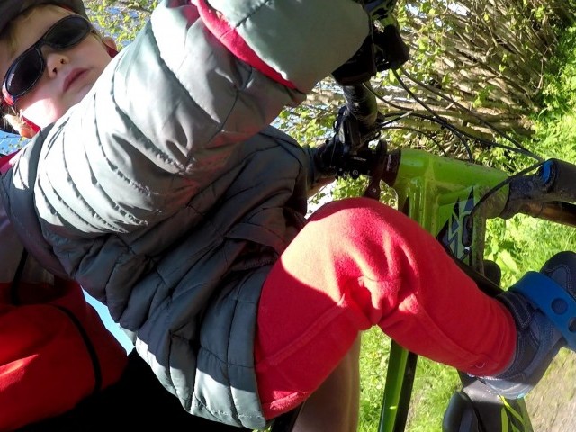 We've now had plenty of adventures since the end of winter (snow and ice seemed a bit sketchy) and things have warmed up, as it can get pretty cold on the front of a bike if you're not pedalling.