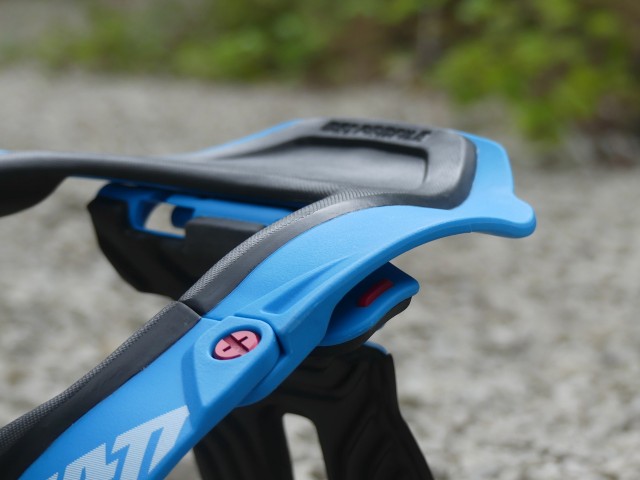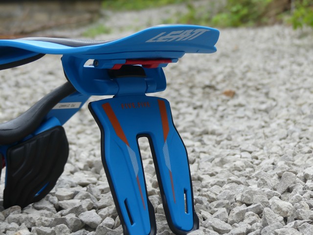 What sets this neck brace apart from older Leatt braces is that it is super easy to adjust, with tool-free adjustment front and rear. The front and back pads can be adjusted easily to make sure the brace sits neutrally on your shoulders and doesn't interfere with your helmet. This is done simply with a plastic catch which when released, allows them to slide forward and backwards. The rear thoracic strut can also be adjusted to the correct angle with interchangeable wedges that bring it in line with your back and prevent any gaps. There is then an optional strap, which goes around your chest to hold the neck brace in place.