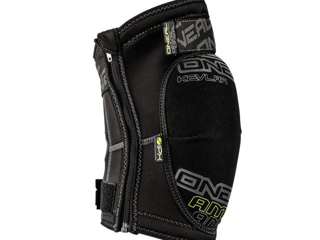 As knee pads become nearly as common as helmets for mountain bikers, the range of options grows ever more extensive. From O'Neal, we have their AMX Zipper pads, which do offer something slightly different from the norm. The clue is in the name, and the zip up the side allows the pads to be fitted without taking shoes off, making the process more simple and convenient. The pads are based around IPX protection, which hardens on impact, and a flexible Lycra fabric mix which keeps things comfortable round the back. There have been previous incarnations of this pad and this is the mark three version, with a few changes to materials and fit.