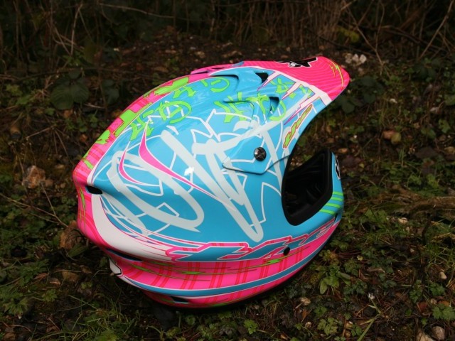 The Industries seem to be bridging the gap between the uber desirable and equally expensive helmets on the market, and the sort of lids you see every day. The graphics and detailing is of a really high standard and there are plenty of designs to choose from. The Throwback will appeal to the guy who is comfortable with his sexuality or probably more likely the female riders out there. Or resident lady snapped it up out of the box before we could even get a look in! The liner is removable and washable and very soft on your face. Most impressive are the 10 vents on the helmet and 4 on the mouth guard to ensure maximum ventilation.