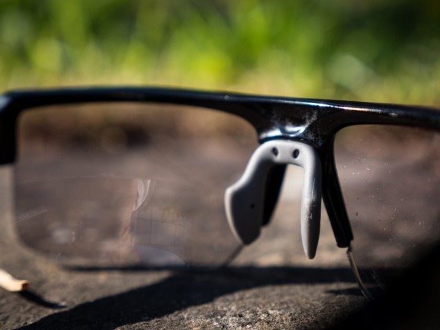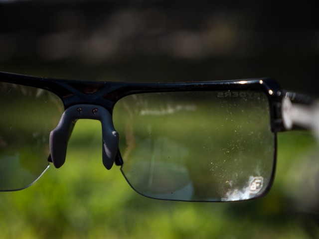 The photochromic element was effective and worked at a good speed, I was never left thinking things had got a bit dark even riding in the trees and in and out of shade. The lens treatment doesn’t stop there either, the back of the lens has a military grade anti-fog treatment and the front sports a hydrophobic coating. Both of these are designed to last a long time, allowing the glasses to be properly cleaned but remain entirely functional. They did perform well in wet conditions, but don't be too mis-led by the term hydrophobic, which unfortunately doesn’t mean that the water will literally bead off every time, in serious rain or spray you will still have limited sight. With a bit of speed or a proper wipe they do come clear a lot better than any other untreated equivalent. In the process of finding the limit of the hydrophobic finish, they never once steamed up, so apparently military grade antiFOG is the one.