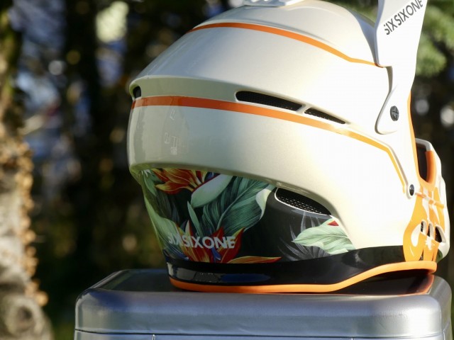 There are four snazzy colours to choose from, and we’ve been testing the ‘Tropic Orange’, which has a light metallic gold finish with orange accents and a nice arty tropical flower design on the back. This might not to everyone’s taste, but we like the style and the fact that 661 are trying new things. There are more subtle, but still very good looking options, of course, Matador Red, Midnight Black and Tundra White are available.