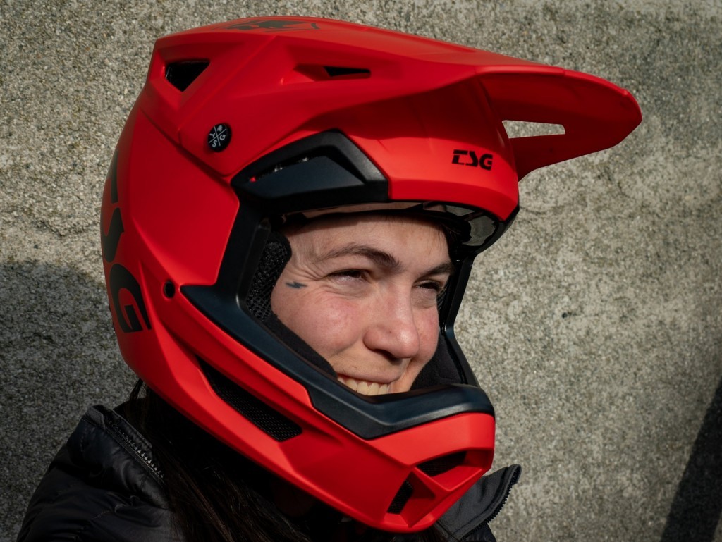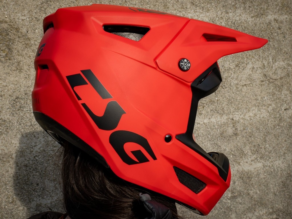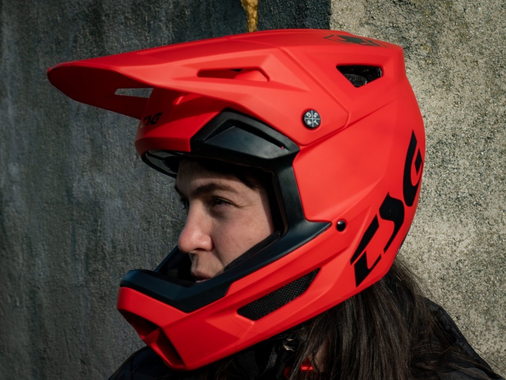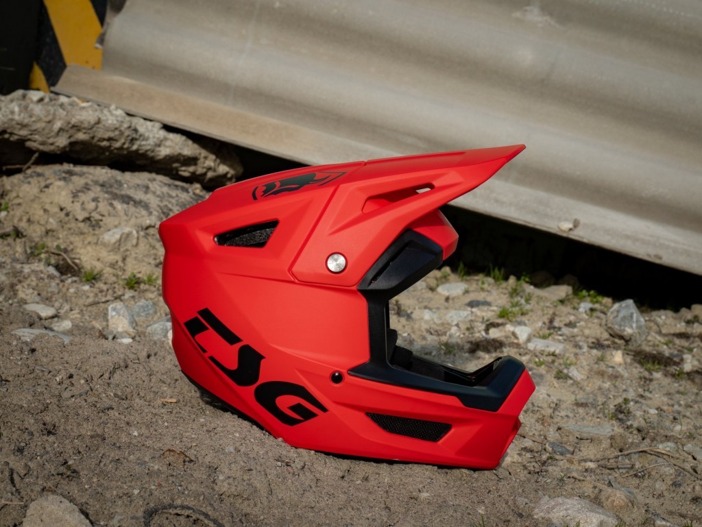 Main design goals were to have a durable helmet, with the correct amount of goggle space and a visor that sits in the perfect position. While DH runs only last a few minutes, the helmet is designed to be worn all day long, aiming for a low weight and good airflow even at lower speeds. TSG did not forget to think about the environment either, and opted to use ABS polycarbonate which can be recycled.