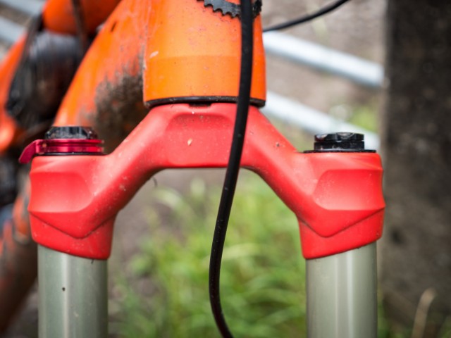 As well as the HBO, you can also adjust the high and low-speed compression via the three dials on top of the right-hand fork leg. Although a little fussy initially, especially to look at, the freedom to alter your set up to suit the trail, from big hitting descent, to long flat climb without ever having to discount is a serious plus in anyone's book.