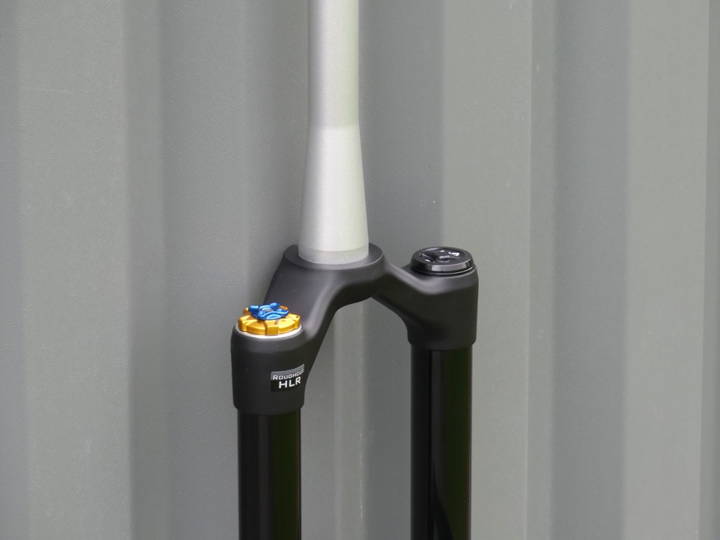 The Trace 36 HLR features their well-regarded Roughcut damper and has adjustable high and low-speed compression damping alongside low-speed rebound damping. The lower spec RC features the same chassis but with the 'RC' damper allowing only low-speed compression and rebound damping. The Roughcut damper uses a bladder-type system and allows for fully independent control of high and low-speed compression, the dials sitting proudly atop the fork crown.