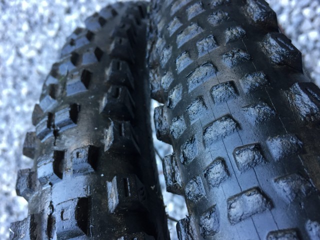 The tread pattern on the Hellkat has been cleverly produced, double ramped centre treads on the leading edge allow it to roll faster than it looks like it would, buttressed shoulder knobs help reduce tyre flex whilst saving weight and there is progressive siping dotted all over the treads which aids both cornering and braking traction. There is usually some compromise in a tyre, but the balance here is excellent; this is one of the best tyres I have ever used, hands down.