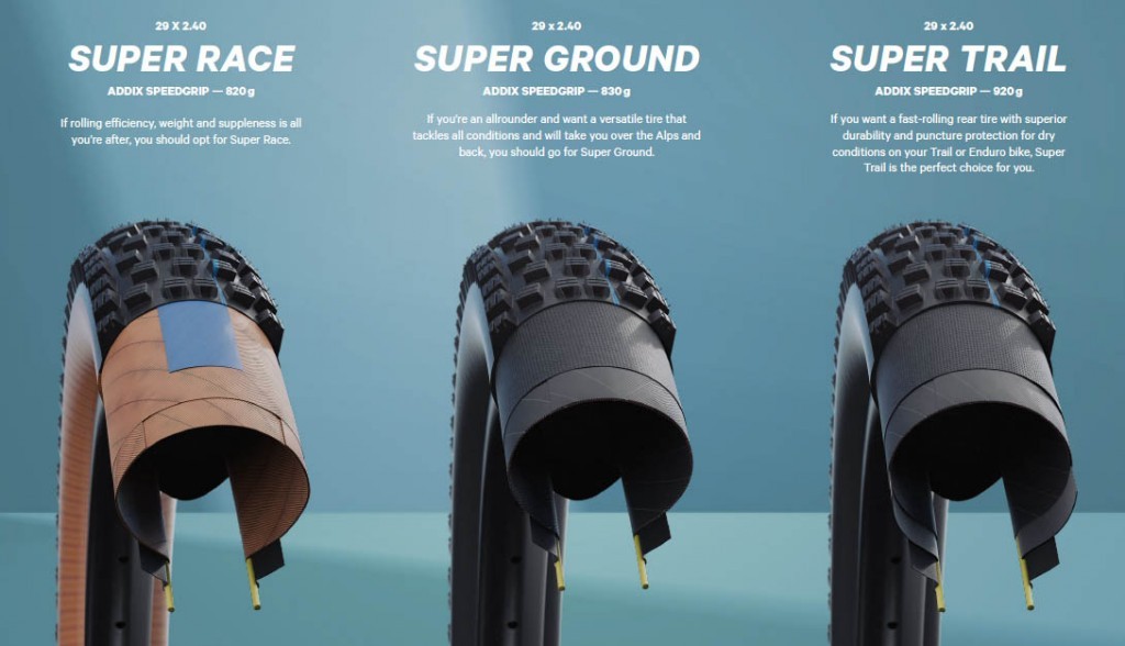 All of the Super Race, Ground, and Trail tires are part of the Schwalbe Evolution line and will sell for 62,90 EUR / 72,79 USD / 62,90 GBP a piece.
