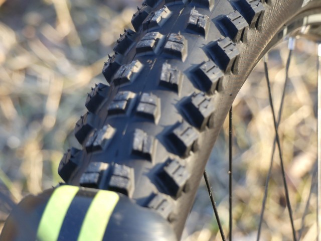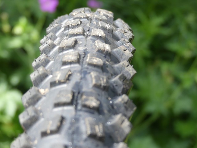 They are a non-specific front/rear tyre, so they do aim to be an all-rounder. Up front, the tyre gives good psychological confidence, with big shoulder knobs and a wide profile which screams grip. The soft compound adds to this confidence, but does add a little drag to the rear wheel, and I did notice this on long, easy climbs. On more technical climbing, obviously, the added grip was appreciated and the large volume offers plenty of traction. The centre line of the tyre is reasonably closely spaced so this does aid rolling resistance yet doesn't offer as much mechanical grip from the lugs as a spike tyre.