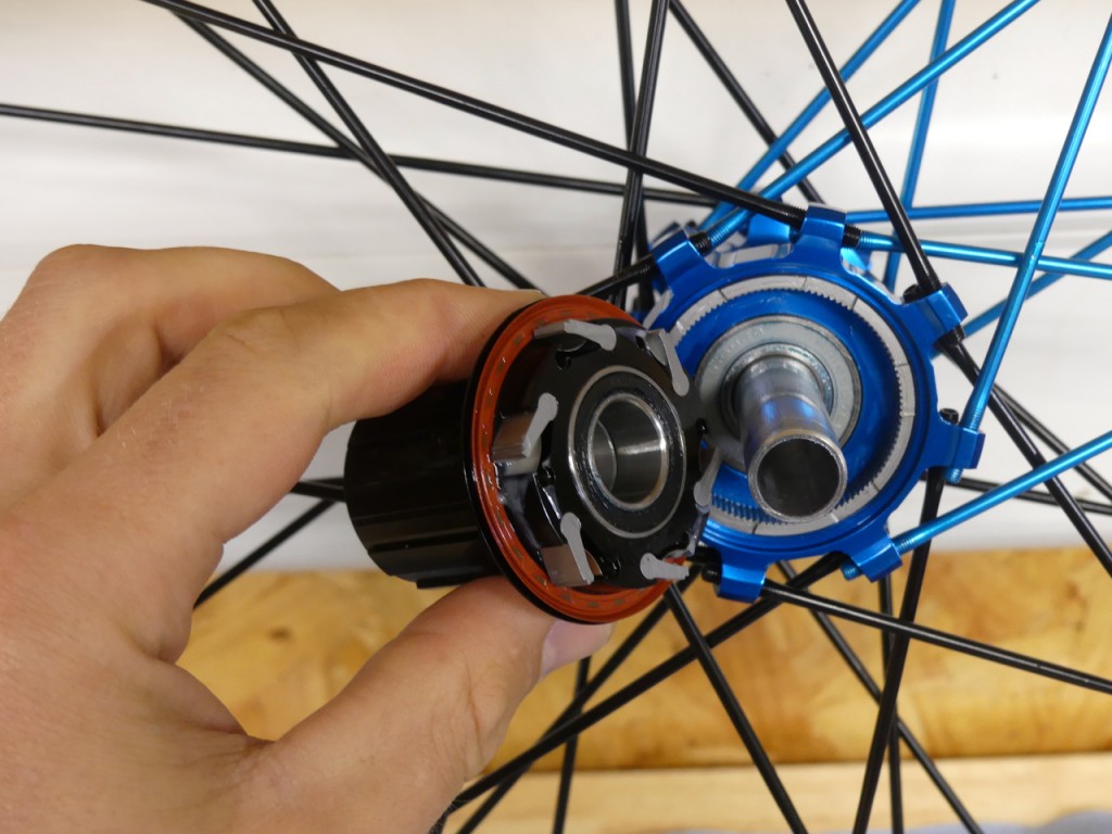 The Hydra hub replaces the Torch as their top performance hub and uses 6 Pawls on a 115 tooth ring to create the tiny angle of engagement. They've changed to leaf springs under these pawls, and each of them engages separately from each other. This means that they don't all 'click' at the same time, but with the inherent flex in the system, they will all support the load and engage together to support the force going through the system. This is achievable by having so many teeth on the drive ring, so a small amount of flex will allow the next pawl to engage.