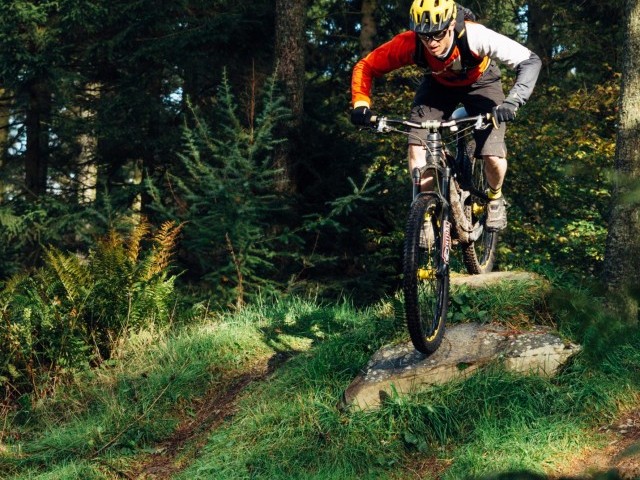 The rolling press drop is the most frequently used shape we make, you're probably doing this already but without conscious thought. This technique is all about taking the bike to the terrain below rather than doing the ‘dead sailor’ where the rider falls down on top of the bike once it has fallen off the drop. The rolling press drop can be used on drops up to a height where the chainrings want to then grind out, if you hunt out a square edge drop of this nature you will find it's a reasonable height and, with practice these more sizeable drops can be taken with speed.