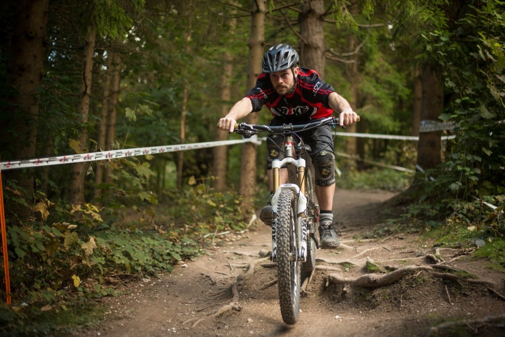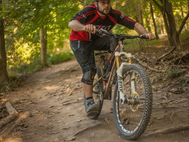 The nature of how camber comes to be, means that as well as having a side-slope to deal with you may also be faced with a fair few ‘inputs’. Camber and roots often go hand in hand. It could be the roots themselves that create the camber. As a trail is worn into a hillside and cuts down to the root ball of the trees that line the trail, so camber can be created. If your bike’s suspension or tyre pressure are not helping, the chances are they are hindering.